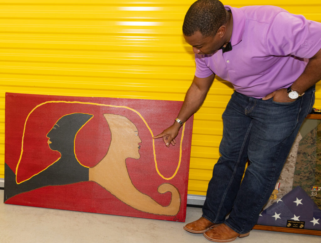 On deployment in Burundi, Jones found his love and passion for the world of art. “A shop owner wanted myself and some other marines to pose with our shirts off, and we said no. Then he took us to the back of his shop and showed us his paintings. I was struck with his paintings,” Jones recounts.