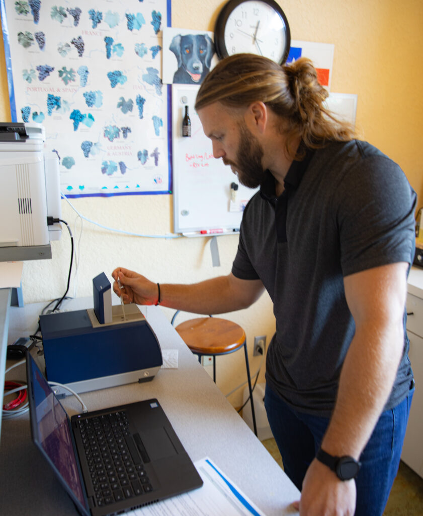 An addition to the wine making process at the winery is a new tool: a wine analyzer. The instrument is used in making decisions such as whether the grapes ready for harvest, is the PH too high or too low, and what is the sanitary level. The device is smaller than most 90’s-era boom boxes but cost $38,000.
