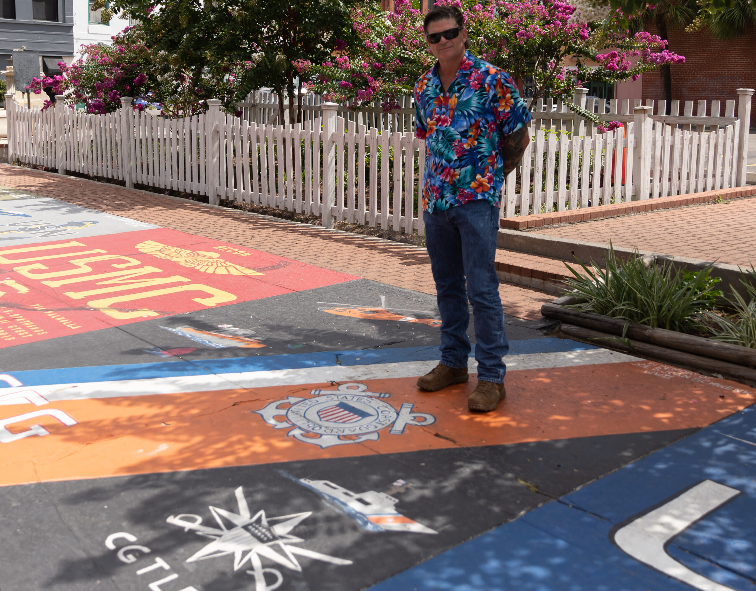 Honoring our service members is something very near and dear to the heart of Marilyn Harris a resident of Galveston. She wanted a painting to honor all military branches and so she rounded up the funds and brought on artist Marc Wyatt. He designed her vision of the “Warrior’s Walkway” on a sidewalk near the intersection of 21st and Post Office in Galveston.