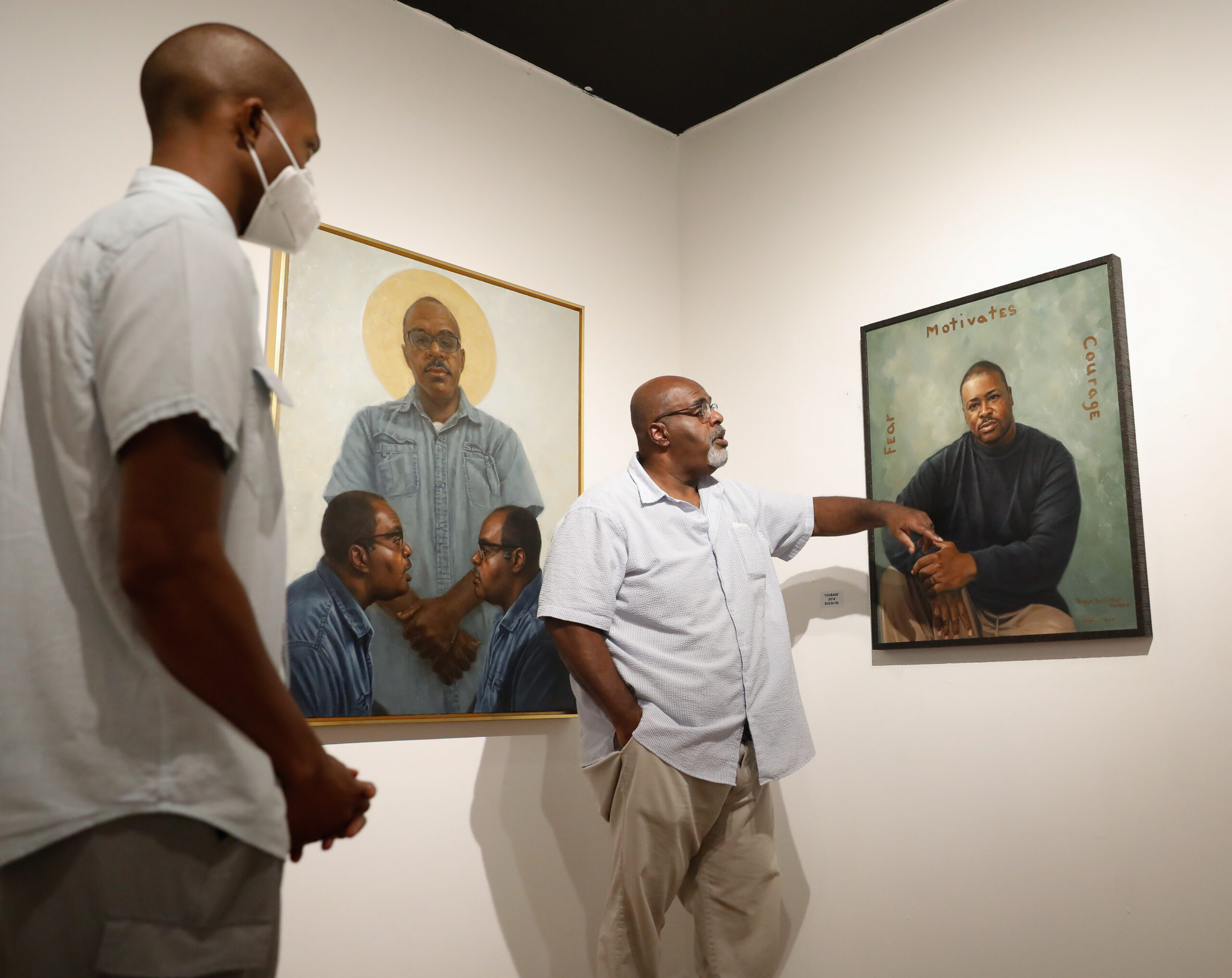 On a Saturday morning at the Houston Museum of African-American Culture, visitors learned Filer was upstairs and flocked into the exhibit to hear him speak about his paintings and tell the stories of the people he has painted.