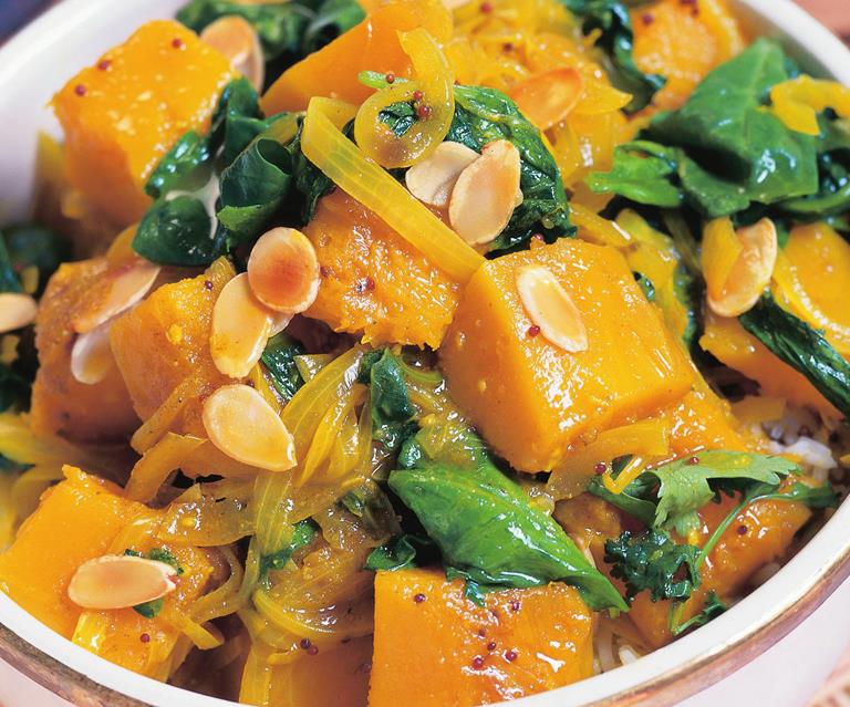 Anyone looking to reap the rewards of a diet with more spinach can try this recipe for “Spinach and Pumpkin Curry” from Deb Roussou’s “350 Best Vegan Recipes” (Robert Rose).