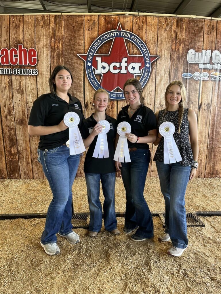 at the Brazoria County Fair. Carly Lazenby, Kamryn Ostermayer, Sammy Walker, and Baylee Wooten placed 3rd out of 25