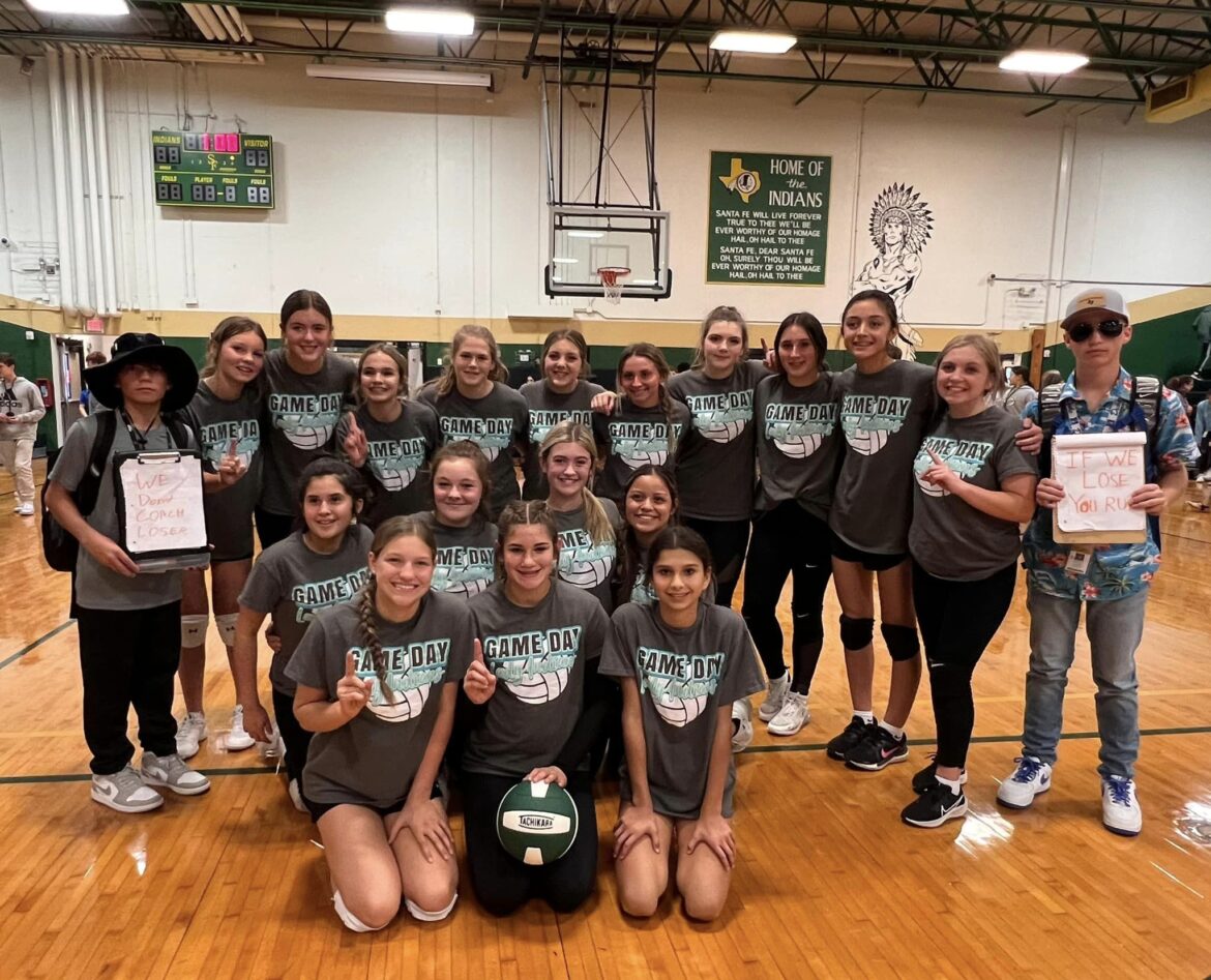 Santa Fe Junior High’s Faculty faced the 8th Grade Volleyball Team this past Friday. It was a nail biter, but ultimately, the 8th grade team won!! The Faculty team fought until the end! All students and staff had a great time supporting their classmates and teachers!