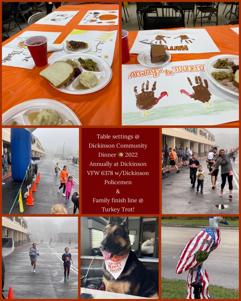 I started out at the veteran’s hub, “Coffee Connection” in Texas City, to find out what’s happening locally, which led me to the Dickinson Community Dinner on Saturday the 19th and ended Thanksgiving night with a shared veteran family dinner in League City at the Transitions Plus gathering.