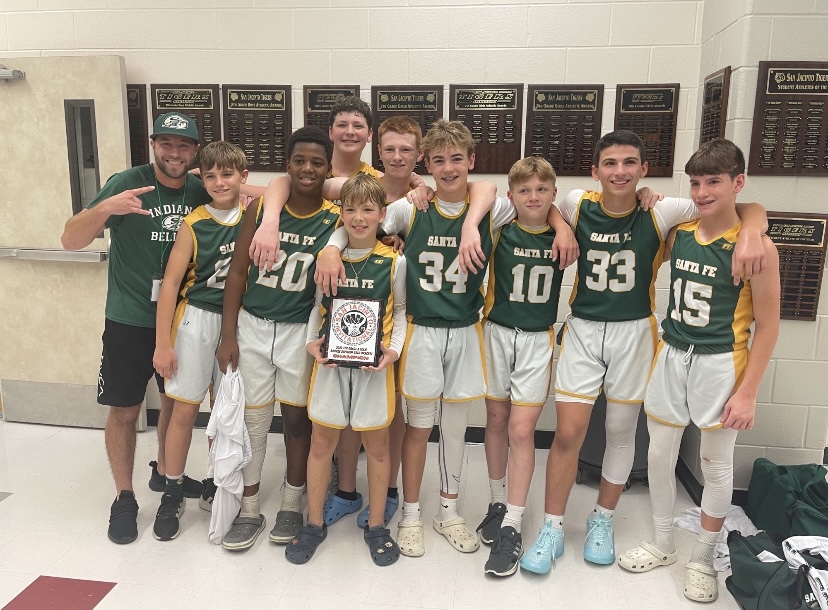 The Santa Fe Junior High 7th Grade A-Team attended the San Jacinto Invitational basketball tournament this past weekend and completely dominated the competition taking 1st place overall!!