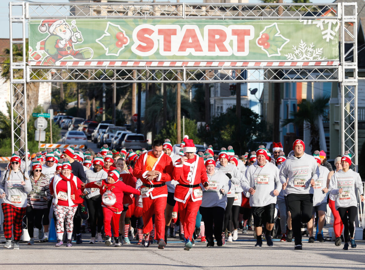 There were so many Santas in Galveston on Sunday it was difficult to tell the imposters from the real deal. It was the 11th Annual Santa Hustle hosted on the island. The Grand Galvez sponsored a kids’ dash, half-marathon and 5k runs. The event and runners ran the course along the Seawall. This year’s runners, as in past years, were sporting a variety of creative costumes, mostly Christmas in nature. One wardrobe item missing were the bikini tops that are often spotted in the hustle. It was a bit too chilly for that kind of exposure, well at least by Texan standards.