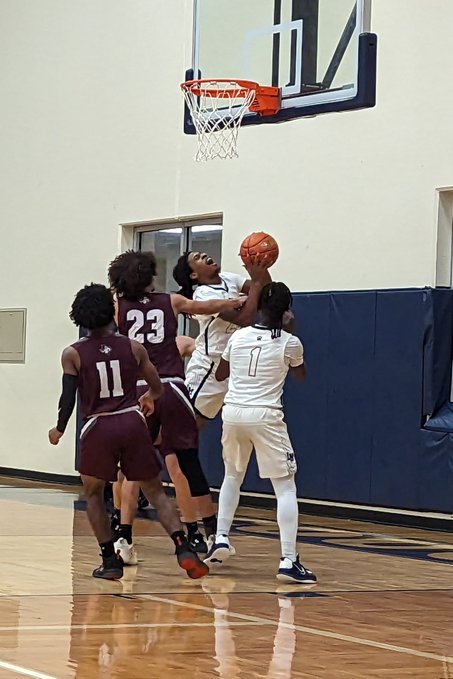 La Marque’s Quintrell Hampton drives to score two of his 10 points in Friday’s 68-39 win over Columbia. It was the first win in District 26-4A play for the Cougars, who will host Bay City this Friday at 6:30pm, a game that can been seen on Clear Live Media.