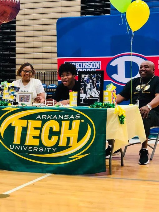 Congrats to a pair of Dickinson High School football players who recently signed letters of intent. Receiver/defensive back De’rion Crooms will be attending Arkansas Tech University, while Gators defensive end Tre Ford will be bound for Bethel College.