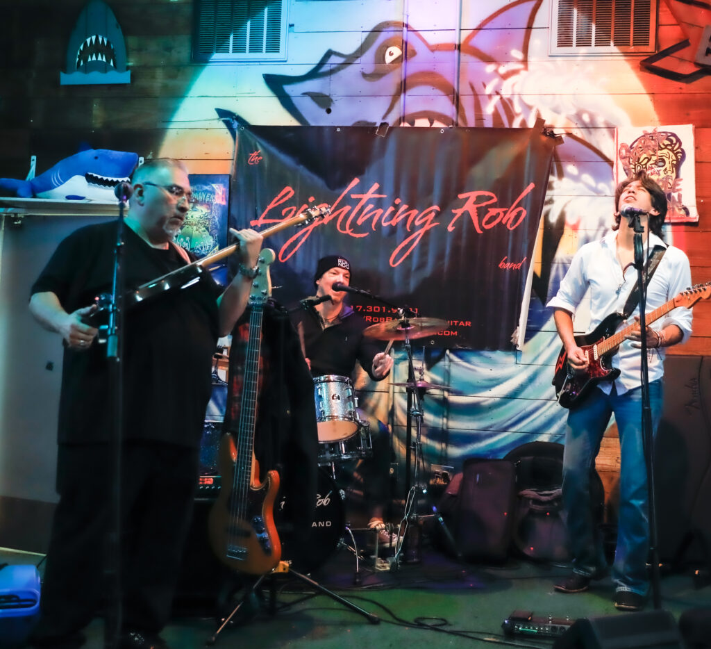 “After I finished a set, a guy comes swaggering up to me and asks, ‘What’s your name?’ I had on my lightning guitar strap and from then on, I was called Lightning Rob,” explained Rob.
