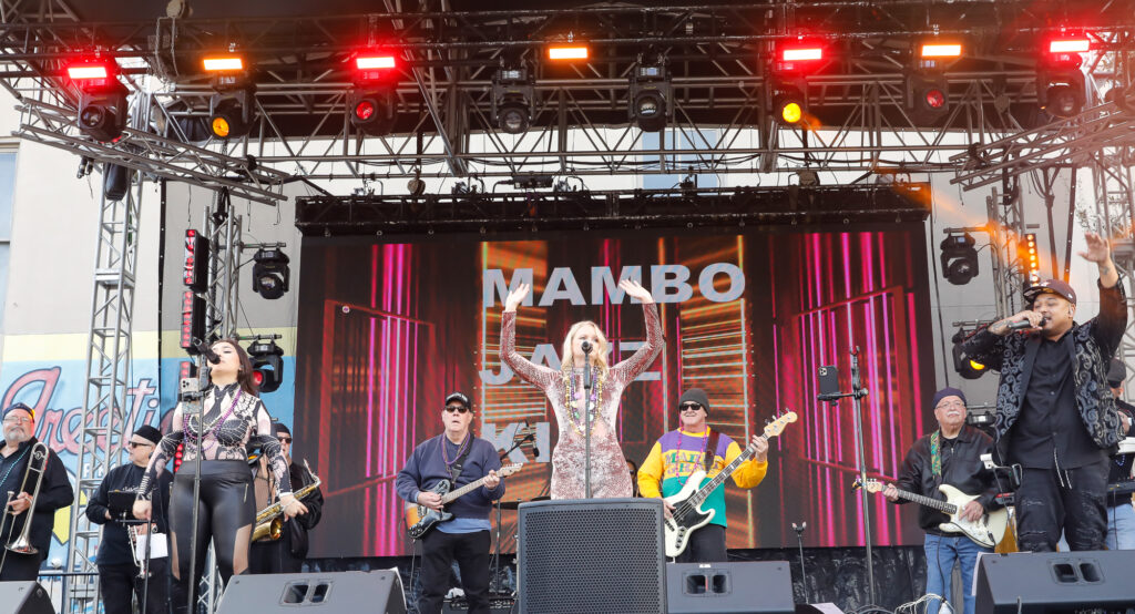 He brought his smile along with his voice and charmed the audience on stage in Galveston. It was his debut Mardi Gras show and his talents were a blessing for the Mambo Jazz Kings and contributed to the exuberant spirit of the afternoon.