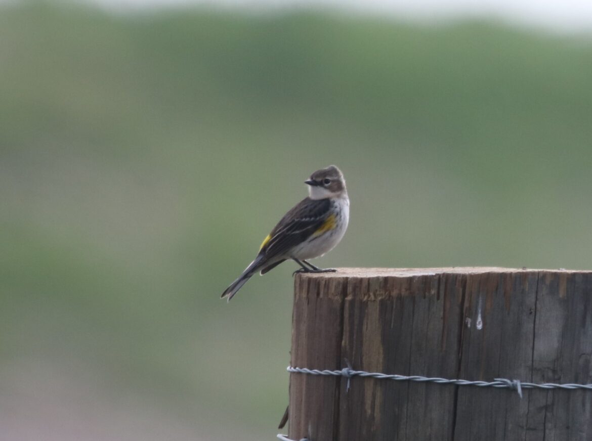 IMG_Yellow-rumped Warbler: Yellow-rumped Warbler observed posing on fence post in Brazoria, TX on February 8, 2023. Photo by Taylor Bennett.