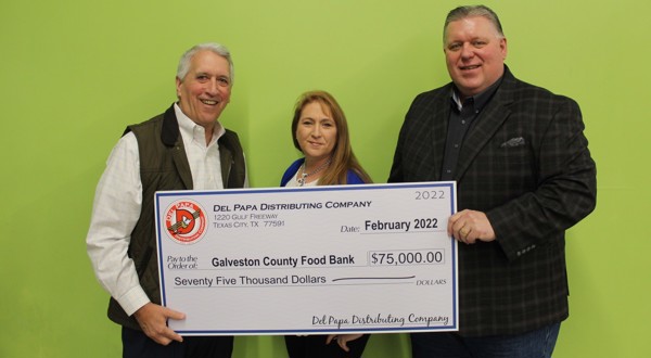 “The COVID pandemic and economic inflation has caused the demand for our services to skyrocket”, said Donnie VanAckeren, President and CEO of the Galveston County Food Bank. “This generous matching grant from Del Papa Distributing will help us provide nutritious meals for thousands of our neighbors throughout Galveston County. On behalf of the Galveston County Food Bank, our staff and our Board of Directors, thank you for helping us lead the fight to end hunger in Southeast Texas.”