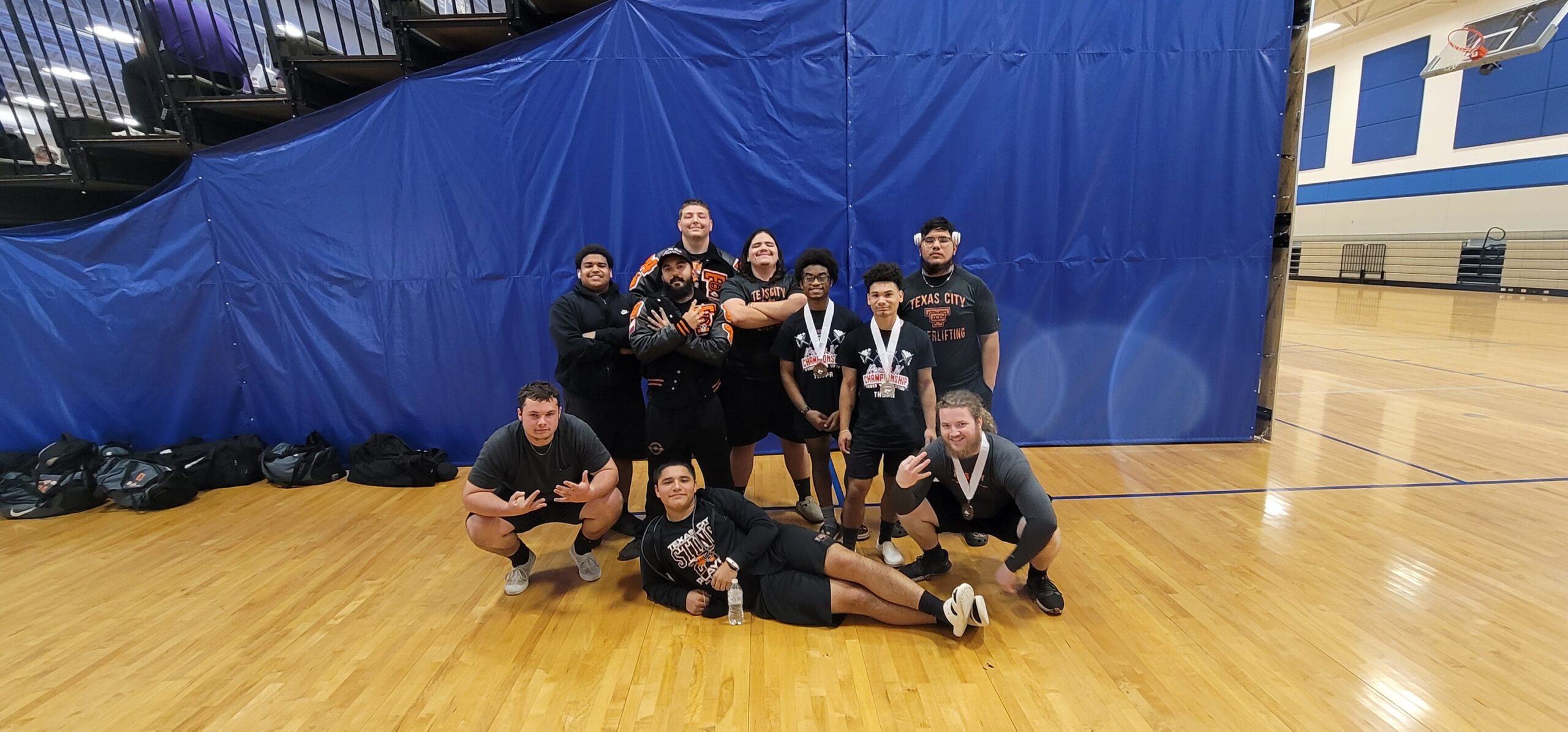 Two Texas City High School boys powerlifters are headed to State! The team of 9 placed 8th out of 30 teams at the Regional Meet. Advancing to State are Carmine Benavides, 2nd Place, and Tony Teeples, 3rd Place. Also finishing were Ian Cortez, 9th Place, Nathan Guerra, 8th Place, Braylnn Harris, 5th Place, Tyler Jones, 7th Place, Anthony Lozano, 11th Place, and Kenneth Williams, 9th Place. Coach Taylor said, “These young men competed hard and represented Texas City High School with class and the determination of champions.”
