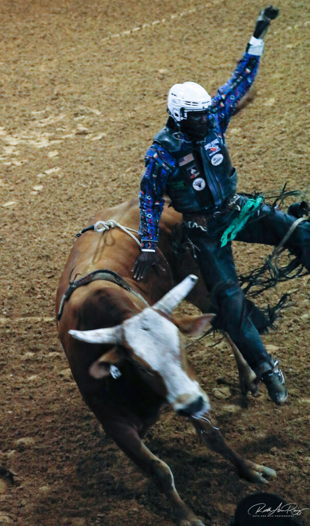 Competitions are about winning, but being a good sport is part of becoming a champion, and Kade, only 4 years old was a good sport. He was not one of the 10 finalists, but he brought his smile and curiosity back to the evening  Mutton Bustin’ event. “Can I take a picture with your camera, please?” asked Kade. With the camera strap draped over his neck and a quick direction on how to look through a view finder, Kade snapped a few pictures of the events in the arena.