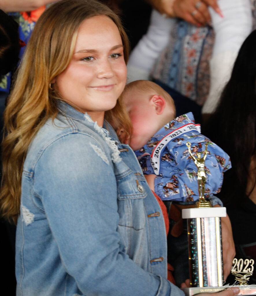 Narrowing down to one baby cowgirl and cowboy was a tough call. The judges handed their score sheets to the person who tallied the totals. The winning baby cowboy was: 8-month-old Steven Wilson from Santa Fe. His good luck was that he fell asleep when he got the trophy and not during the judging.
