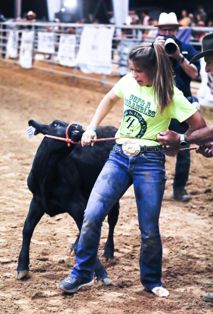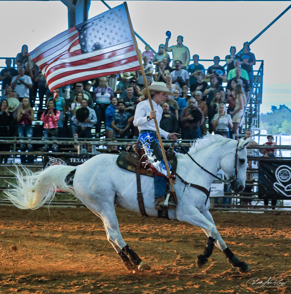 Sofia from Alvin shared that she’s been riding bulls for just nine months. She rode in last weekend’s event, but she showed up too late for Saturday’s sign in time. Keeping the spirit alive, she hangs out to watch as the rodeo begins.