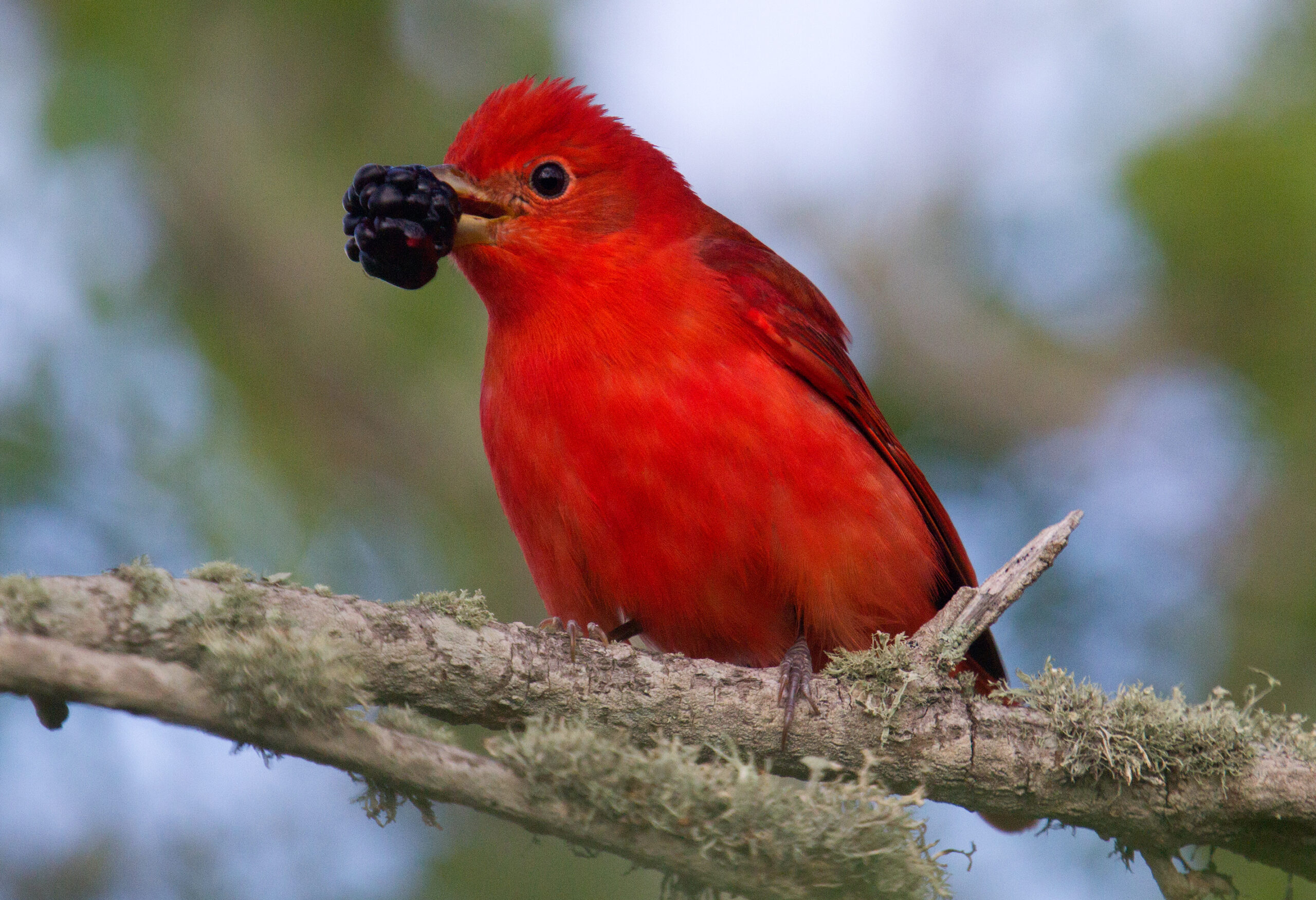 Caption: A Summer Tanager enjoying the food and shelter of a stopover site.