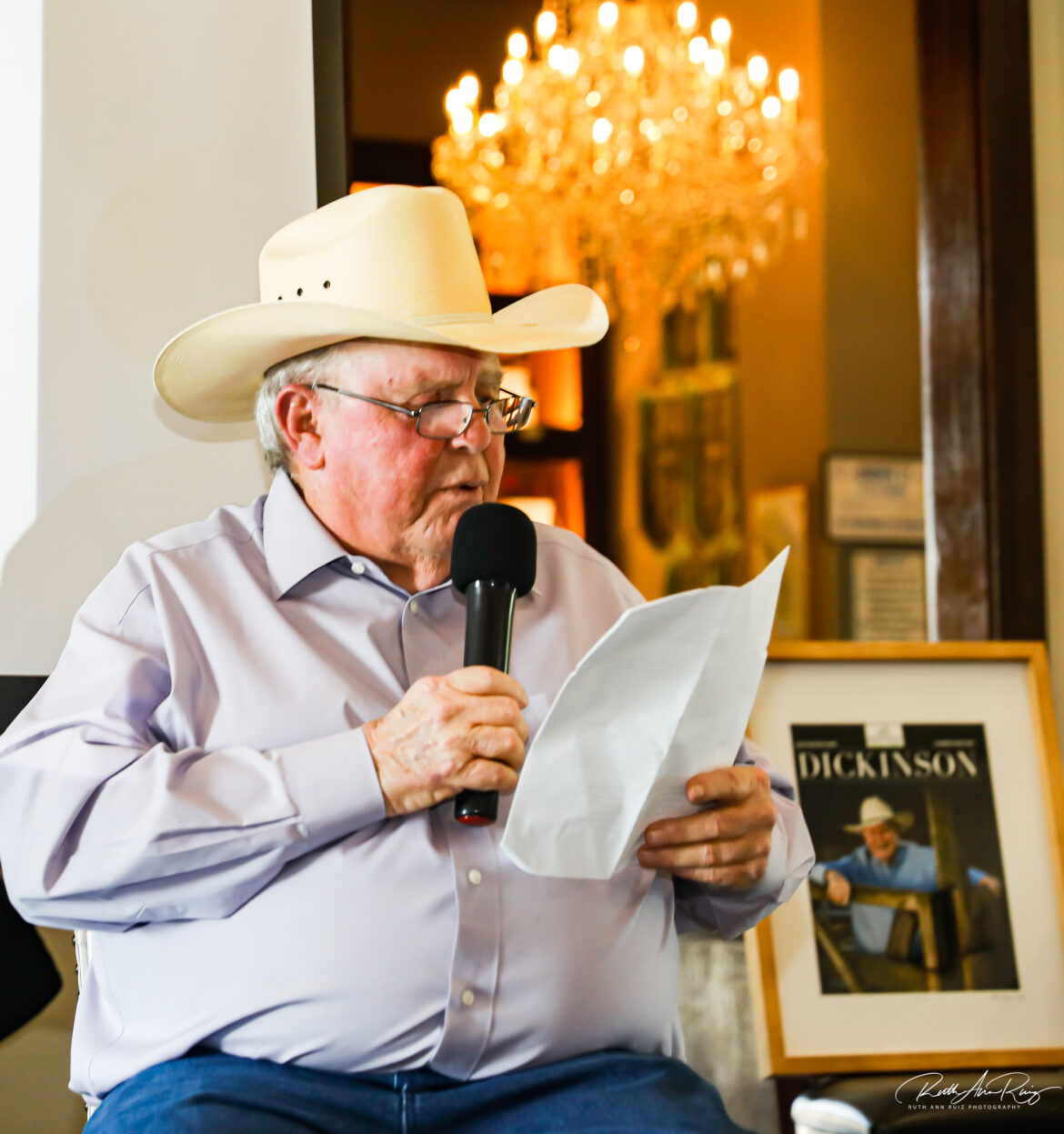 Not only is he on the front cover, but also he was asked to write a short account of his experiences growing up in small town—Dickinson. The audience listened intently as he read his story about growing up in Dickinson.