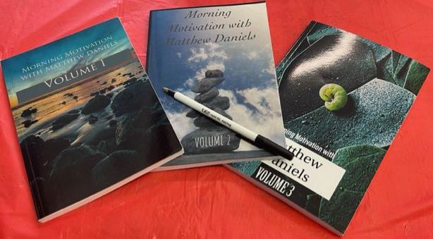 By month’s end, Daniels will have completed his sixth copy of “Morning Inspirations With Matthew Daniels,” a series of books with a story and an inspiring thought for every day of the year. His goal is to complete this year with a book for all 365 days of the year.