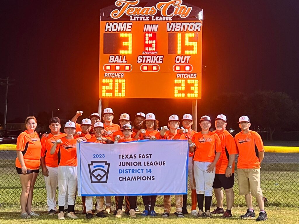 Congratulations to the Texas City Little League Juniors All-Star Team! They are undefeated and have won the District Championship and Sectional Championship. The team traveled to Tyler this weekend to compete for the State Championship.