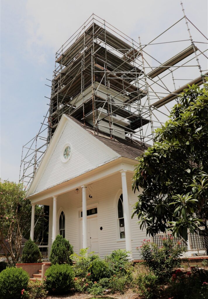 After months of construction, the new cross and steeple are nearing completion and can now be seen again atop the historic League City landmark which was  originally built in 1910.