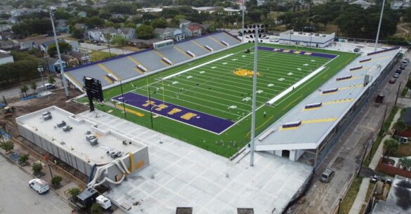 Galveston Ball will play their first football game at the revamped Courville Stadium on September 15 against Houston Sterling. The stadium has undergone a host of renovations over the past year, including new artificial turf, new concession areas, stadium lighting and restrooms.