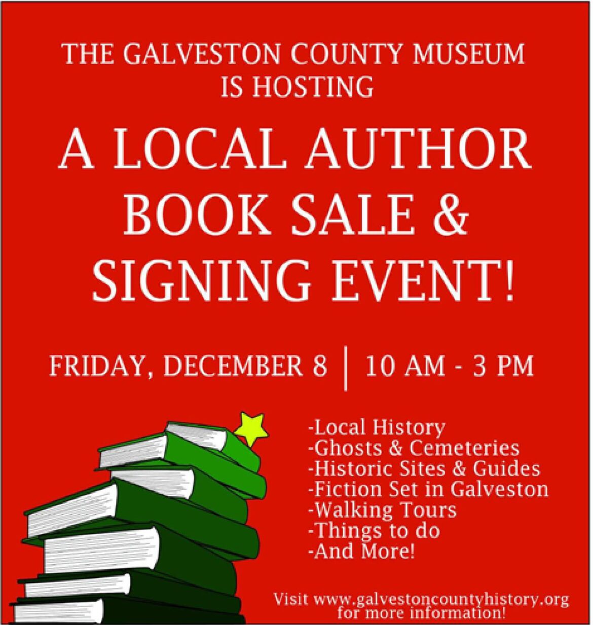 The Galveston County Museum’s Local Author Book Signing Event will include: