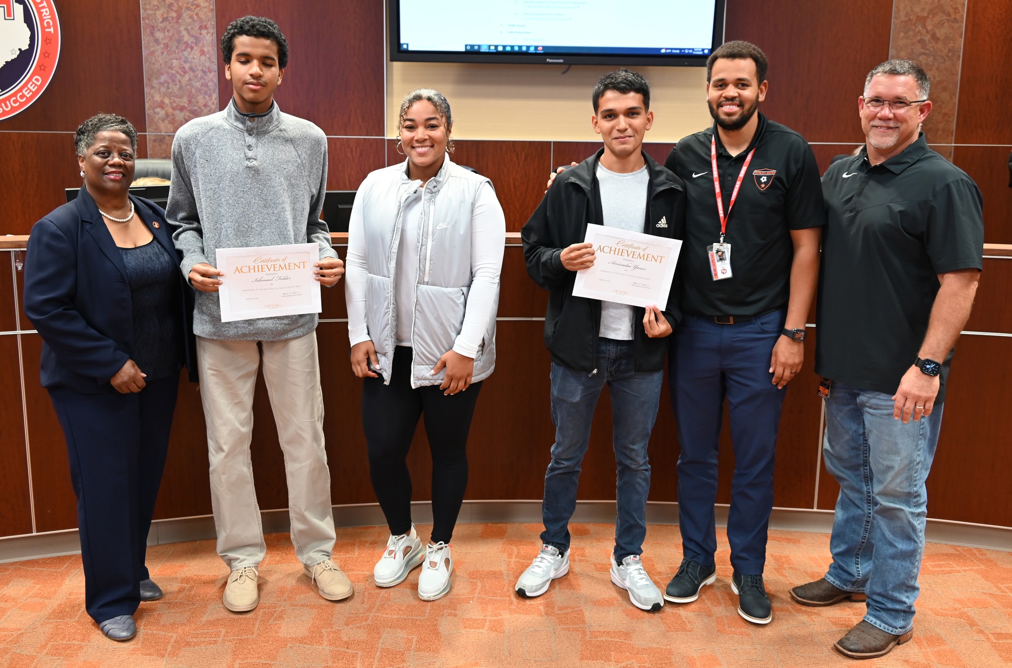 La Marque and Texas City High School Cross Country sprinted into triumph this season. LMHS’s Ishmael Felder advanced to the Regional Meet, while TCHS’s Amisadai Yanez qualified for the State Meet, ranking an impressive 82nd in the state with a time of 16.44. Their achievements were celebrated by the TCISD Board of Trustees.