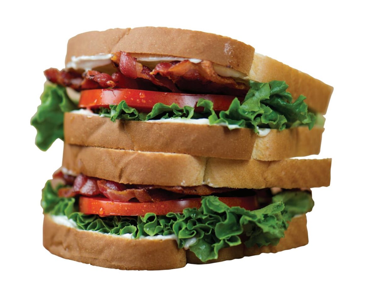 There are many ways to enjoy bacon during meals, and not just at the breakfast table. In this recipe for “BLTs with Pimento Cheese,” bacon is the star of the show and enhanced by pimiento cheese, which is a spread traditionally made from shredded cheddar, mayonnaise and pimiento peppers. It’s often called the “pâté of the South” because it is frequently utilized in cuisine popularized in the southern United States.