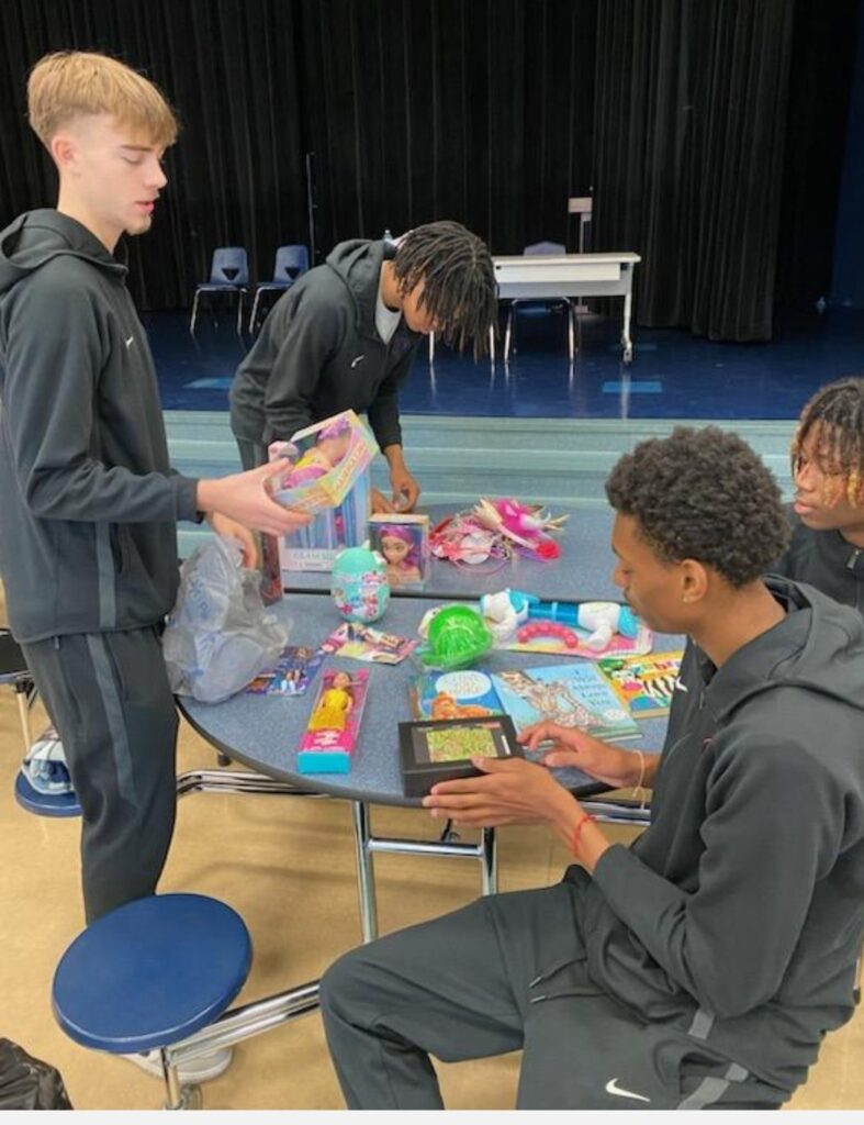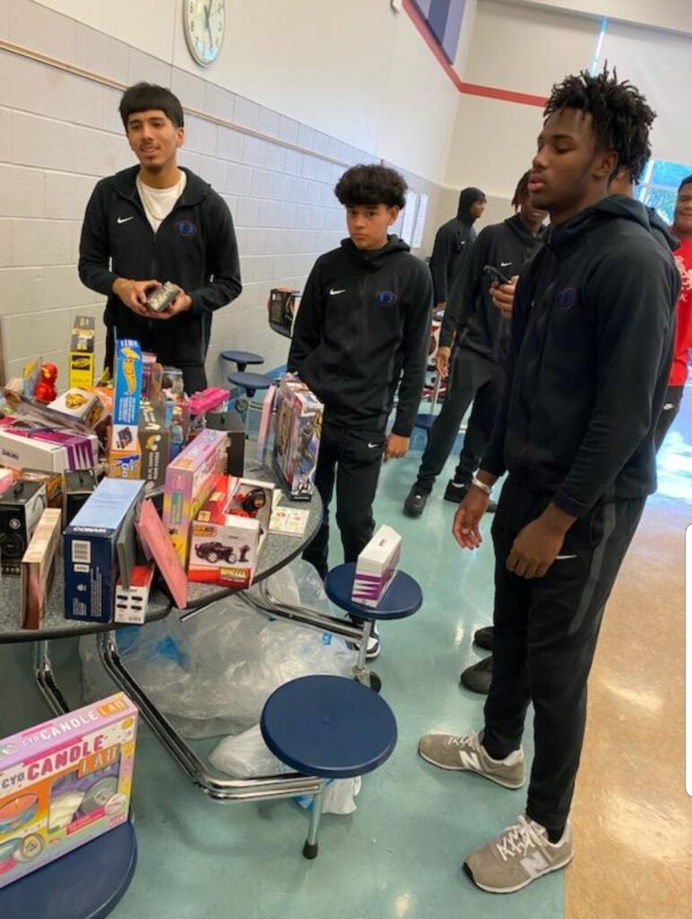 Members of the Dickinson boys’ basketball team took time to contribute to the holiday season by contributing to a toy drive to help area children have a brighter Christmas.