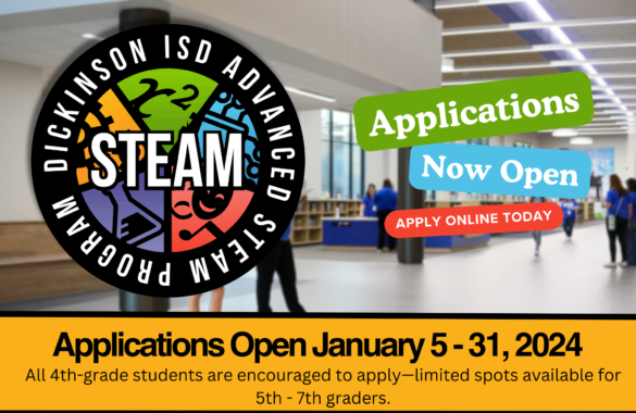 Thank you for your continued support of educational excellence in our district. If you have any questions or need further information, please feel free to contact Nathan Robinson, STEAM Program Specialist, at nrobinson1@dickinsonisd.org or 281-229-6624.
