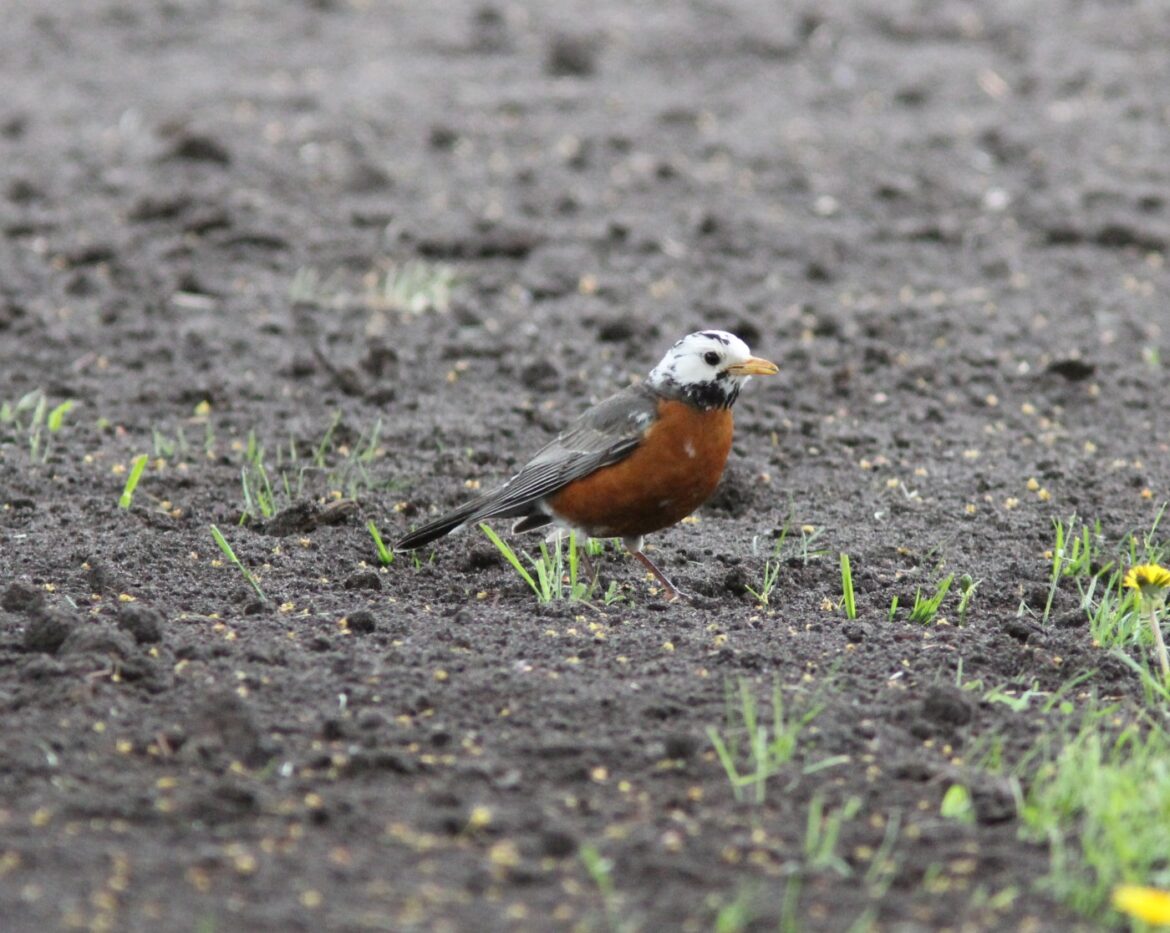 Leucism is really an umbrella term for a variety of abnormal plumages. Sometimes a bird exhibits a dilution, meaning their plumage is washed out or lightened compared to the normal coloring of their feathers. Some birds only have a few white feathers and are called pied or piebald birds.