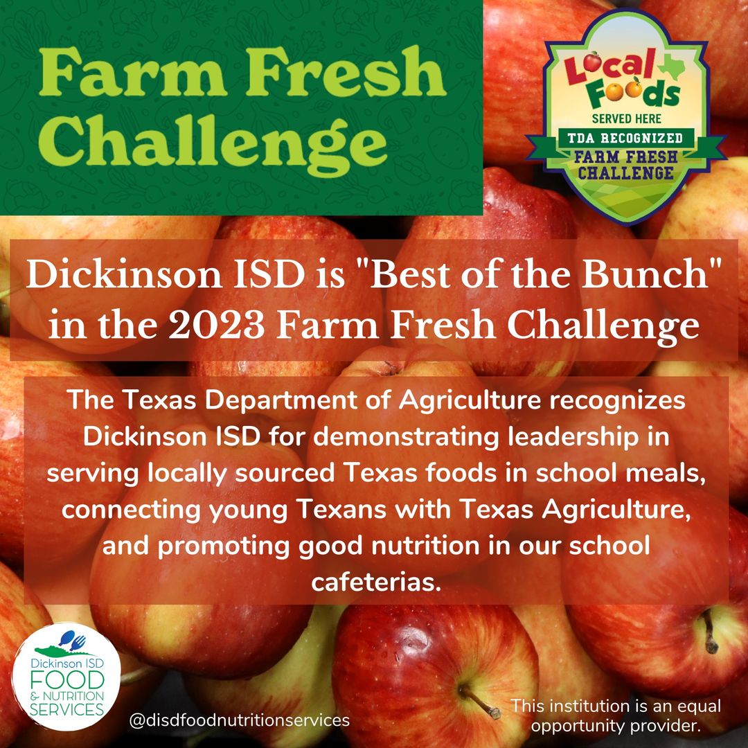 Dickinson ISD Food and Nutrition Services has been awarded “Best of the Bunch” in the 2023 Farm Fresh Challenge!