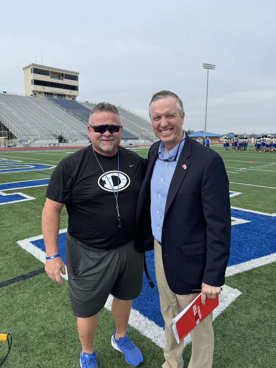 Dickinson’s football team continues to be one of the best pipelines of future college football talent, evidenced by the visits to The Swamp from University of Texas head coach Steve Sarkisian and new University of Houston head coach Willie Fritz, both of whom came by this week to look at potential Longhorns and Cougars.