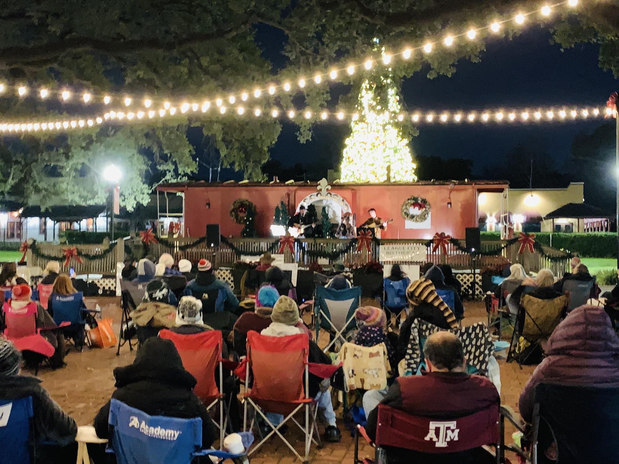 Michael Peterson, president of the historical society says the folk music series “Music in the Historic District,” (Formerly “Music at The Museum”) started out as a small song circle style music performance in front of the League City History Museum.  The museum, located at 210 N. Kansas St. provided the backdrop for a handful of small concerts which saw 20-30 audience members.