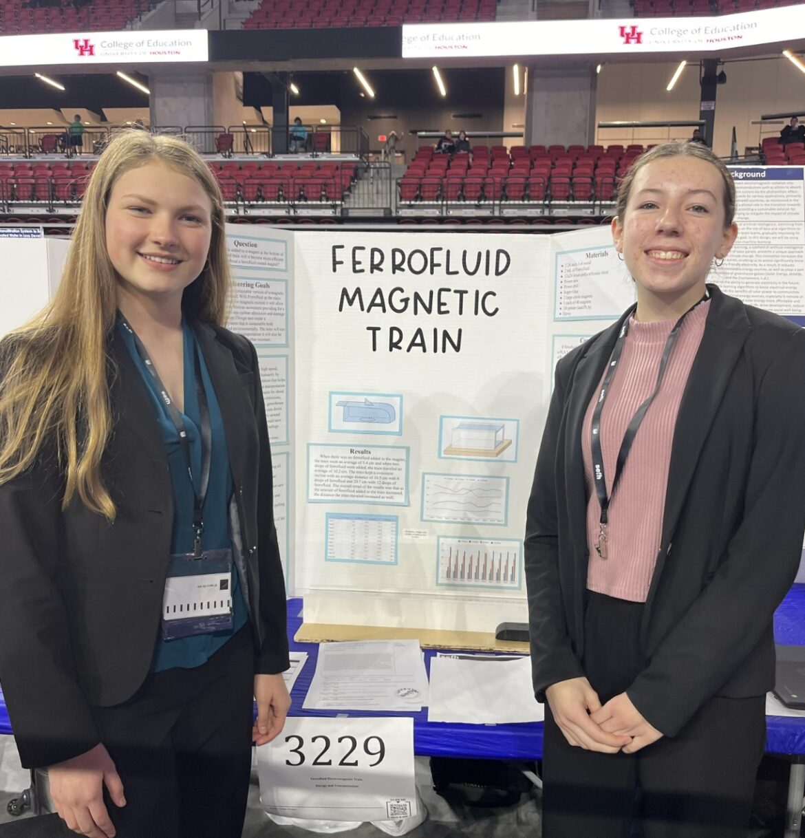 Congratulations to Olivia Esbeck and Lillian Gonzales for receiving an Honorable Mention in the Energy/Transportation category with their project “Ferrofluid, Electromagnetic Train” during the school’s Science Fair