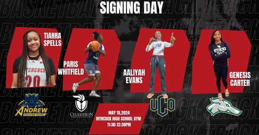 Hitchcock High School will host an event to celebrate the signings of Genesis Carter, Aalyiah Evans, Tiarra Spells and Paris Whitfield on Wednesday, May 15 at 11:00 am. Each of the student-athletes will sign their letters of intent in front of family and friends.