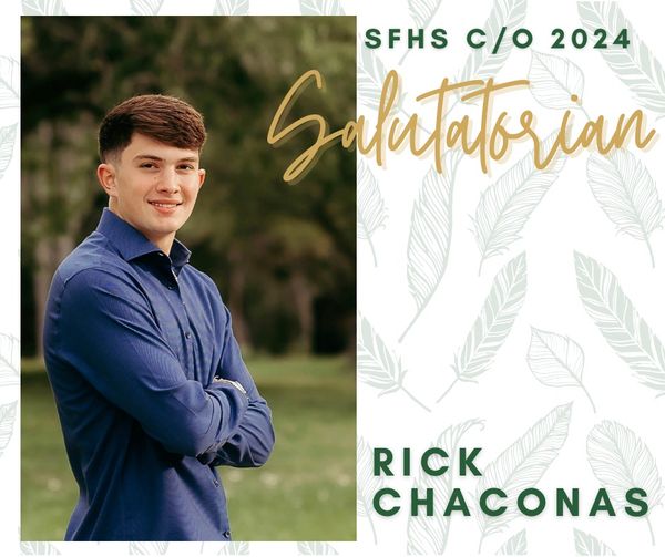 Santa Fe ISD is pleased to present the Santa Fe High School Class of 2024 Valedictorian, Arya Vyas, and the Salutatorian, Rick Chaconas!