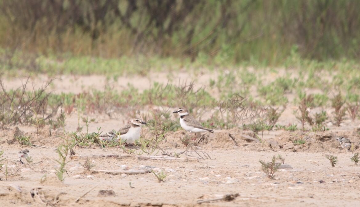 Beach nesting bird season officially began last month, and the Gulf Coast Bird Observatory research crew has been diligently monitoring the upper Texas Coast for our target species, Wilson’s Plover, and Least Tern. The Wilson’s Plover is a shorebird that prefers to nest in the soft sand along the dunes, mudflats, and shelly areas with vegetation. During the breeding season, they split into pairs and create their own territories. The Least Tern is a water bird that prefers to nest in large groups mainly in flat, open shelly areas. Both of these species are federally protected by the Migratory Bird Act and are considered species of high concern due to habitat loss and disturbance.