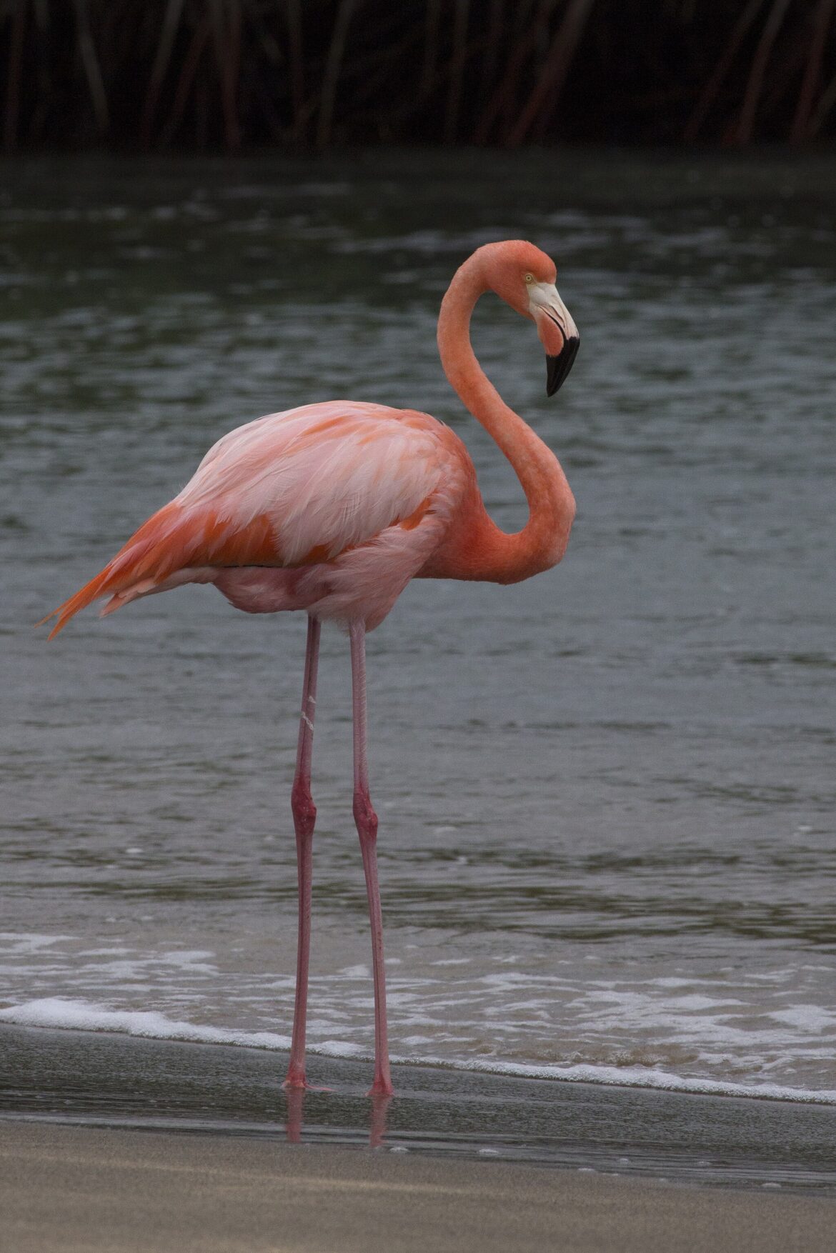 The American Flamingo is commonly found in the Caribbean and along the northern coast of South America. Historically, it was found throughout Florida, but it was largely extirpated by the early 1900s. The American Flamingo is the largest of the four flamingo species in the Americas, followed by the Chilean, Andean, and James’s Flamingos.