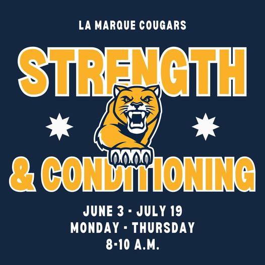Join the Coogs this summer for a FREE Strength and Conditioning Camp at La Marque High School for all 7th-12 grade athletes (male and female) from Giles Middle School and LMHS. Each student must have a current physical for the 2024-25 school year on file.