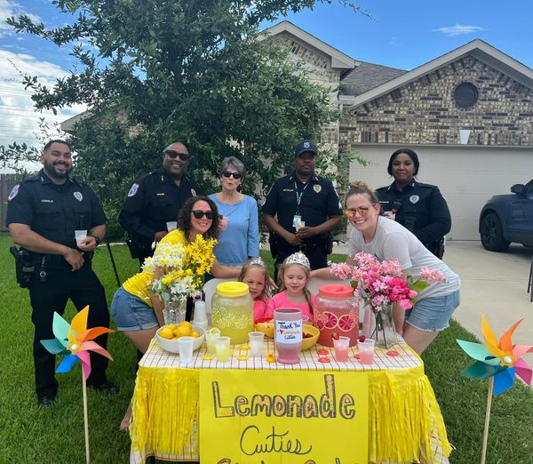 A few Texas City Police Department officers had a royally sweet day when they visited the part of our kingdom known as Marlow Lake Subdivision and were served lemonade by two local princesses. Thank you to Officer Cornejo, Lieutenant House, Sergeant Reynolds and Officer Chandler for supporting these young entrepreneurs and for serving our community!