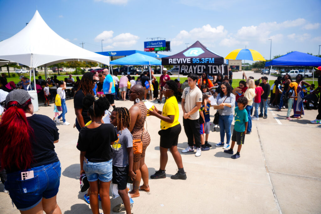 1: People are pictured lining up at Coastal Community Federal Credit Union’s annual Back 2 School Bash, held on Aug. 12 in La Marque. Over 600 backpacks were given away.