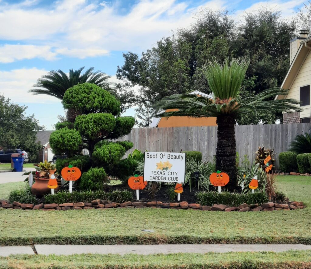 The Texas City Garden Club selected the home of Freddie and Susie Ayala ~ 1438 29th Ave N. (The Islands) for their October “Spot of Beauty.” Much more than just a “Spot,” the entire yard is beautifully landscaped. They did a Spooktacular job in “Keeping Texas City Beautiful.”