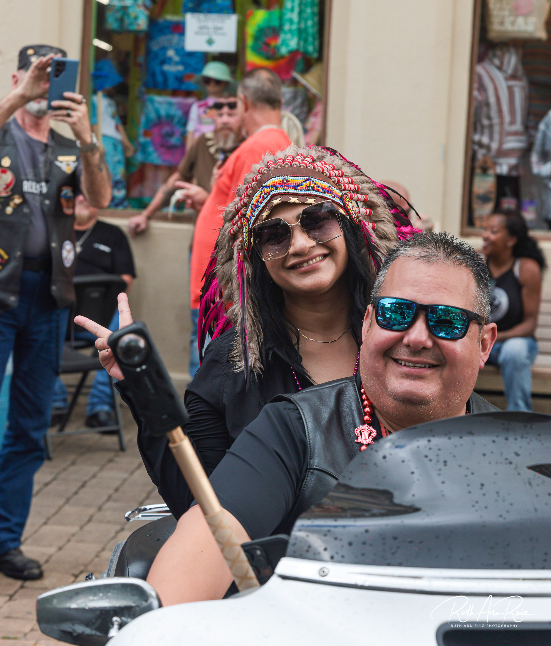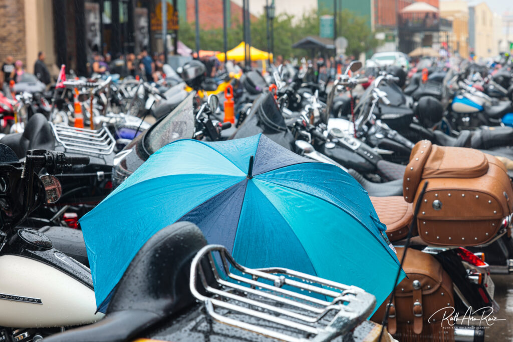 Though the rain started out light on Thursday, by Saturday, it was pouring down, and attendees were seeking shelter under patio coverings and inside local establishments. But when the rain paused, motorcycles and people brought the festivities back out to the streets.