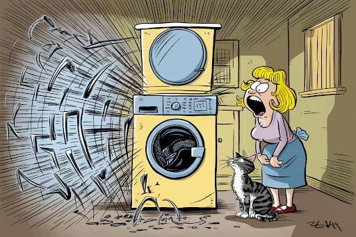 Q: Two years ago I bought a Whirlpool top-loading washing machine from Lowe’s. The spin cycle creates a noise so loud it can be heard all through the house, and probably by neighbors. It is balanced correctly and load sizes and detergent are proper.