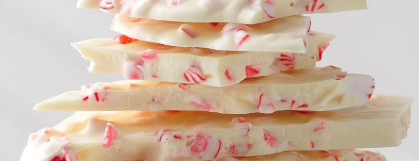 White Chocolate Peppermint Bark 1 pound white milk chocolate candy, coarsely chopped 1 tbsp butter 1 tbsp canola oil 1 cup chopped peppermint candies or candy canes Line a backing sheet with parchment or waxed paper. In a microwave, melt candy coating; stir until smooth. Stir in butter and oil until blended. Stir in candies. Spread to desired thickness on prepared pan. Refrigerate until firm. Break into pieces. Store in an airtight container in the refrigerator.