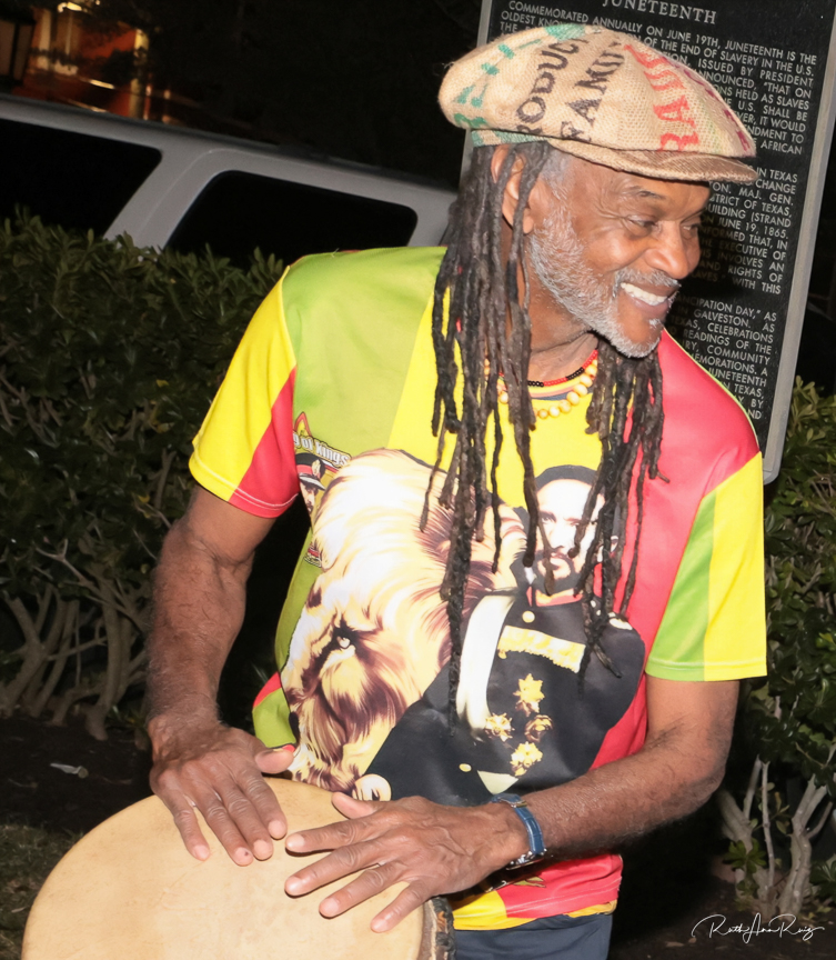 Galveston musician, Curtis Gillins provided a live percussion performance and engaged the attendees in playing and learning more about the percussion instruments that have long been part of African culture and continue to bring musical joy to people today.