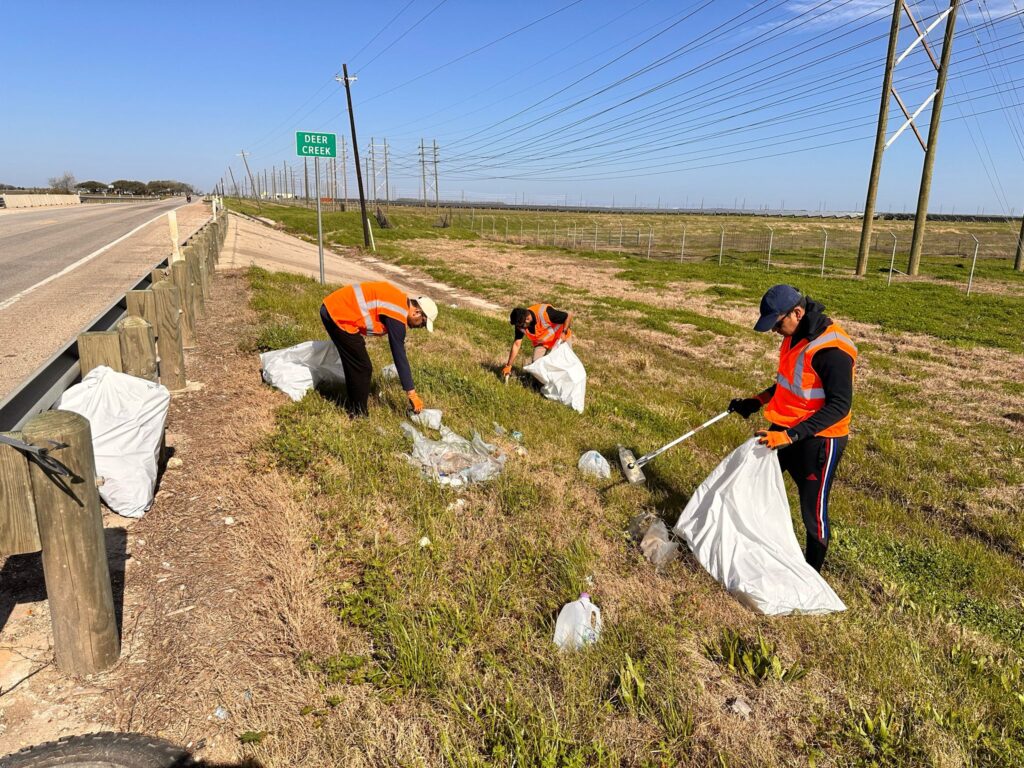 from Fort Bend County cleared seven large trash bags, removing approximately
