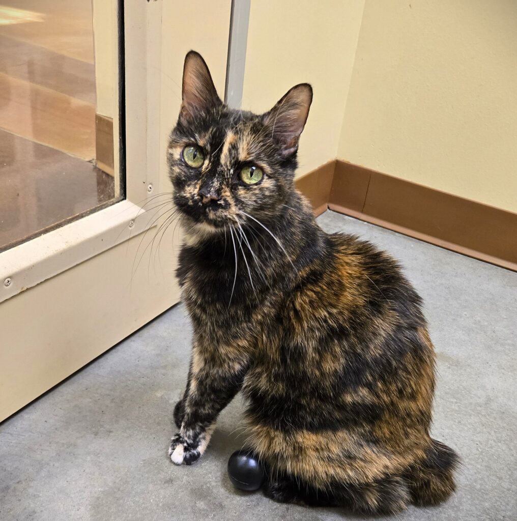 Give a big Hello to Jane (A039641), a spayed Domestic Short Hair with a tortoiseshell pattern coat. Jane is a mature lady of about 15 years old with a lot to offer: plush tortie coat with a beautiful blend of colors, bright eyes, combo Neg for FeLV and FIV, curious and outgoing. Jane once had a home and maybe another name but leads ended up going nowhere so she is a gal of mystery. She enjoys time in the get acquainted room playing with toys and getting attention. Jane has lots of love and is looking for a quiet home and a new family. Come meet Jane today, she may melt your heart!